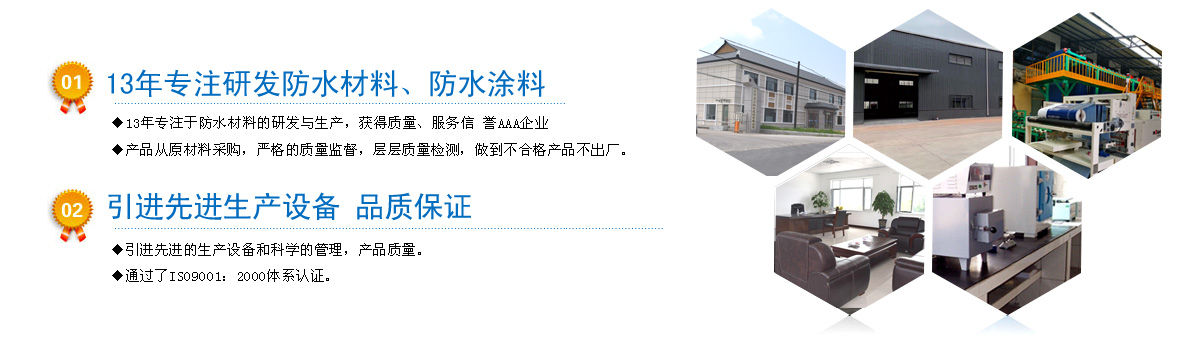 13年專注于防水材料的研發(fā),獲得工業(yè)產品生產許可企業(yè); 嚴格按照IS09001質量管理體系標準進行管理......